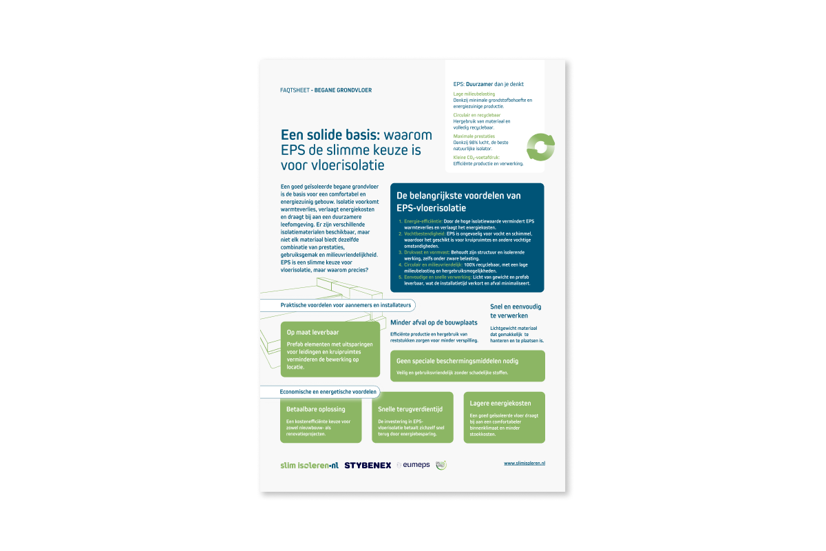 FAQTsheets geven heldere en praktische informatie over verschillende toepassingen van EPS. Met feiten en veelgestelde vragen wordt snel duidelijk wat de mogelijkheden en voordelen zijn. Van isolatie tot constructieve toepassingen – de belangrijkste punten overzichtelijk op een rij.
