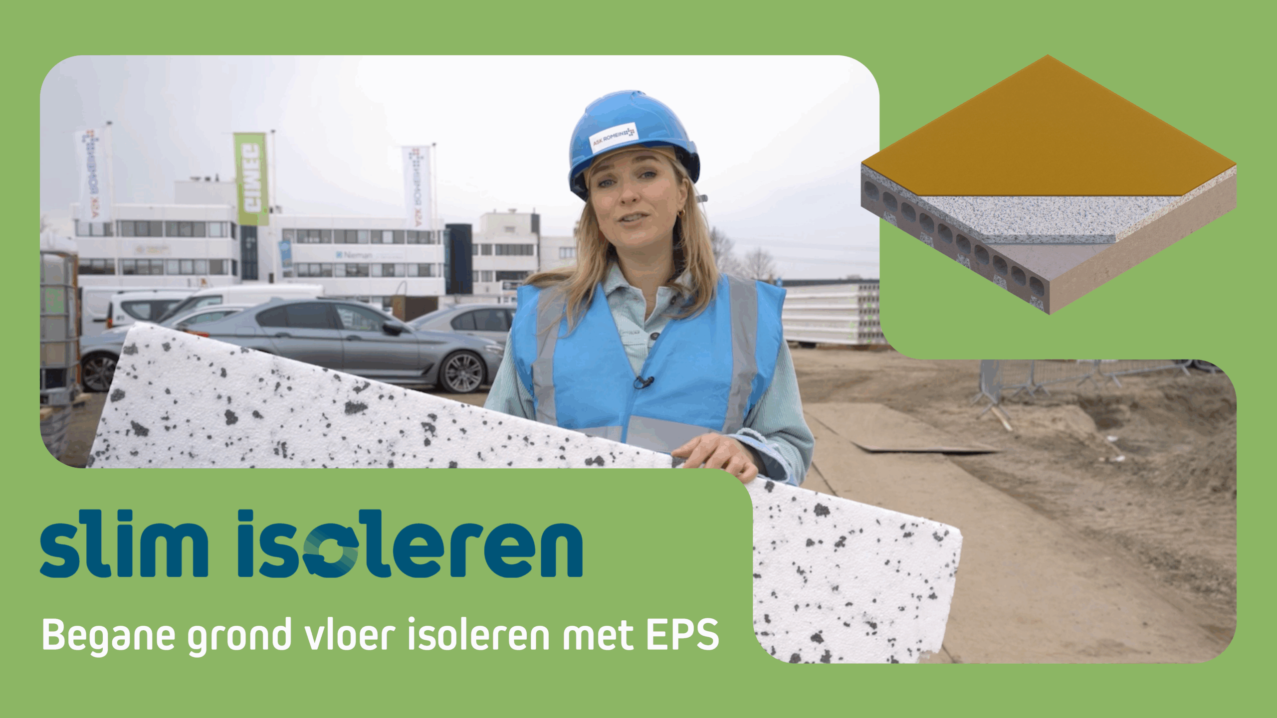 Laurien is in Heeten om een hellend dak te isoleren met geluidswerende isolatieplaten van EPS. Ook bezoekt ze fabriek, waar de EPS platen gemaakt worden.